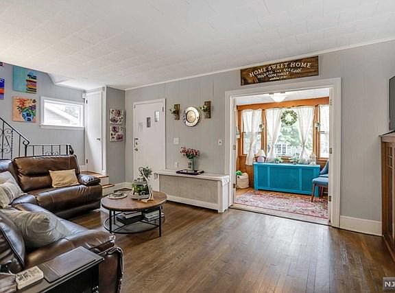 Updated items include newer sidewalks, newer driveway, newer roof, newer gas heating system, newer driveway, newer electric, newer dishwasher and stove, newer gutters. House has a warm and friendly front porch entrance way, and two real yard patios. Parking for two side by side cars in large new freshly paved driveway. First floor includes and warm sunroom that provides plenty of light, FDR, EIK, Dining Room. Lots of storage in basement and walk-up attic. Listing agent related to owner.