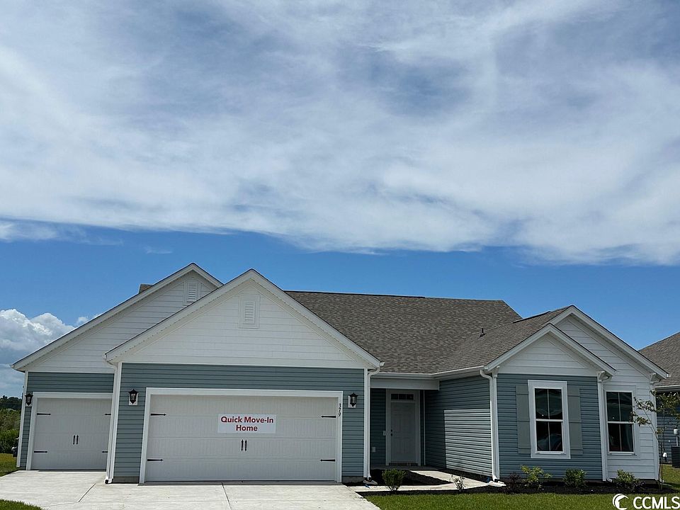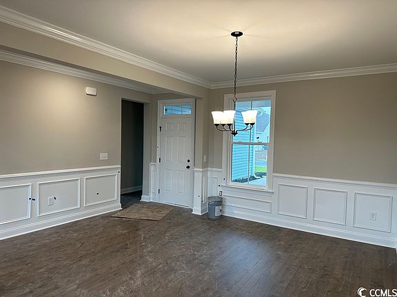 The Popular Reynolds floor plan featuring a 3-Car Garage, a huge Screen Porch with a lake view, 3 Bedrooms, 2.5 Baths, and an Open Concept Design with the Dining room and Great room open to the Kitchen. A perfect home for entertaining! The spacious Kitchen (Choice A) offers Level 3 Cabinets with crown molding, Whirlpool stainless steel double oven range, over the range microwave vented to the exterior, and dishwasher, Aspen Grey Quartz Countertops, a Level 3 Backsplash tile by Daltile, Progress Lighting Staunton Pendants in Oil Rubbed Bronze, a Moen Oil Rubbed Bronze Island faucet, and easy maintenance REV Wood laminate flooring by Mohawk. The Foyer is illuminated with an upgraded transom window over the front door. The Dining room and Foyer boast chair rail, picture molding, and crown molding. The well-appointed Primary bedroom includes REV Wood flooring, a lovely Bay Window, a generous Primary Bath (Choice B) with a glass enclosed 5ft walk-in tile spa shower with a Moen rain shower head and wall shower head, double sink vanity, and a large walk-in closet that also includes 18x18 tile flooring. More upgraded-included features: 5.25 baseboards and 3.5 window casing, Sherwin Williams Agreeable Gray wall paint and white ceiling paint, Moen Oil Rubbed Bronze Brantford bath plumbing fixtures, faux wood window blinds, gutters, a lawn irrigation system, Level 2 18x18 flooring tile in all baths and the laundry room, natural gas tankless Rinnai water heater, Energy Star Certified and Indoor/AirPlus EPA Qualified with an ERV (Energy Recovery Ventilation) Fresh Air System by Broan. The ERV creates a more comfortable home with less pests, pollution, or moisture. Belle Mer offers amenities galore: a premier location between Myrtle Beach and Murrells Inlet, a Community Clubhouse with a catering kitchen and gathering hall, pool, and exercise room, weekly trash collection, water views, and sidewalks throughout.