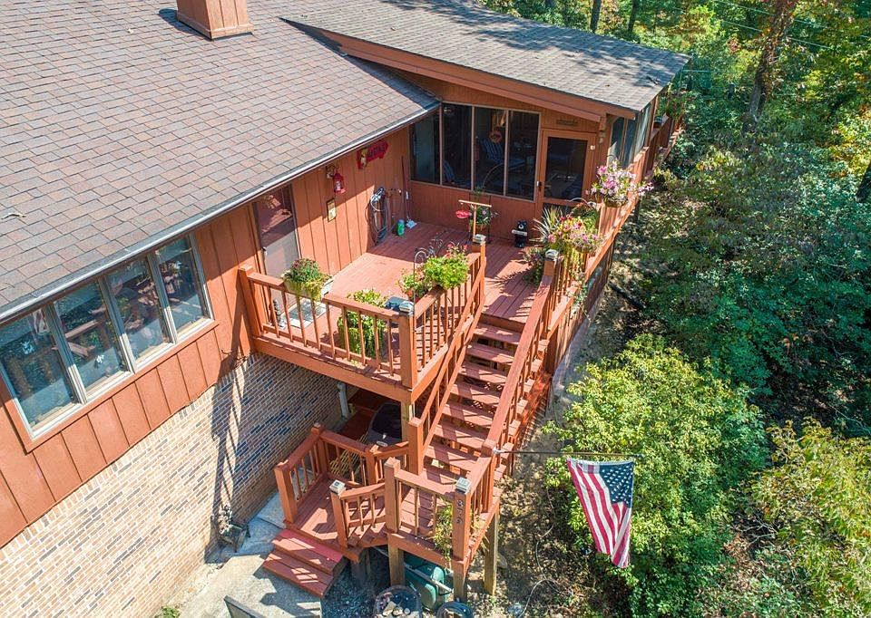 - Exterior Finish: Wood Siding, Cedar, Brick