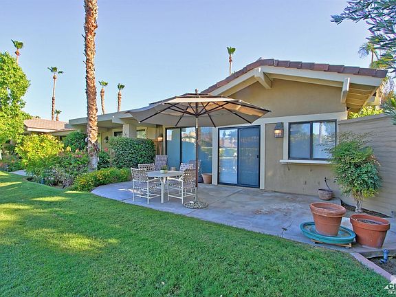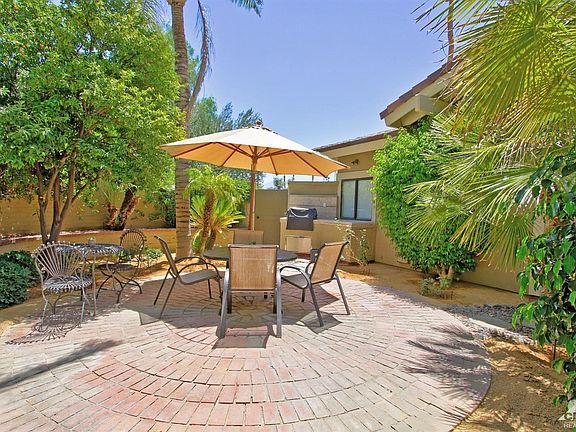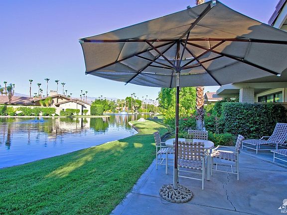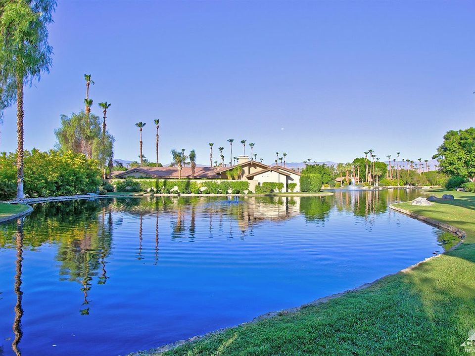 End unit with an enormous side yard featuring orange, lemon, grapefruit and trees. Extensive landscaping including a two tiered water fountain, outdoor kitchen and 3 patios. South facing on water with mountain views. Living room with volume ceilings, fireplace and custom cabinets. Dining room with wood French doors to the side yard. Kitchen remodel with gas stove, granite counters, wine cooler and furniture quality cabinetry. Atrium converted to living/office space with custom built-ins. Custom lighting and speakers throughout. 5 inch baseboards and 18 inch tile flooring. Lite tubes make this a very bright unit. Wood French doors to side yard from the master bedroom. A private oasis in the Lakes Country Club. 27 championship golf holes designed by Ted Robinson, 15 tennis, pickle ball and platform courts, a state of the art fitness center, 44 pools and spas. It's a life style!$379,000 is a great price !