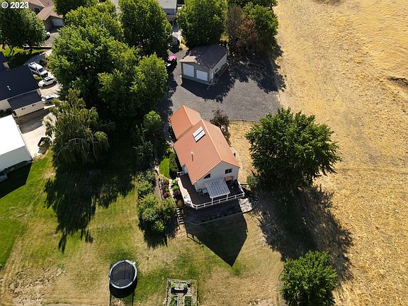 Luxurious custom home with almost 3,000 sq ft, sitting prominently on a country-esque acre lot, on the edge of Pendleton Proper while boasting panoramic views of scenic landscape, wildlife, and the beloved Blue Mountains. Featuring grand architecture throughout with sky-high ceilings, ski-lodge balconies and enchanting open beam construction, along with hardwood floors, seamless gas fireplace and wrap-around Anderson windows, highlighted by rich-toned natural wood doors and bold trims throughout. In the high end kitchen you find custom hardwood cabinetry, presenting striking glass uppers, granite counters, chef's gas stove, and stainless steel appliances. Currently there are 3 bedrooms with potential for 4, and 3 bathrooms with stylish finishes. The primary suite offers generous spaces with an adjoining room with 3 separate closets and a beautifully finished bathroom with dual sinks. Downstairs includes a large family room and oversized laundry with additional space for a 4th bedroom. Step out to the spacious trex deck sporting those sensational views, along with a fenced yard, underground irrigation, and an impressive 30 x 40 shop with 12' and 10' roll up doors and 220 outlet. Passive solar energy saving features include 12 inch walls, a peaceful solarium for morning coffee or evening reading, and a thermal copper roof. An additional bonus room for office, den or music, rounds out the multiple spaces in this striking home. Simply Spectacular with the best of city and country. Call Today!