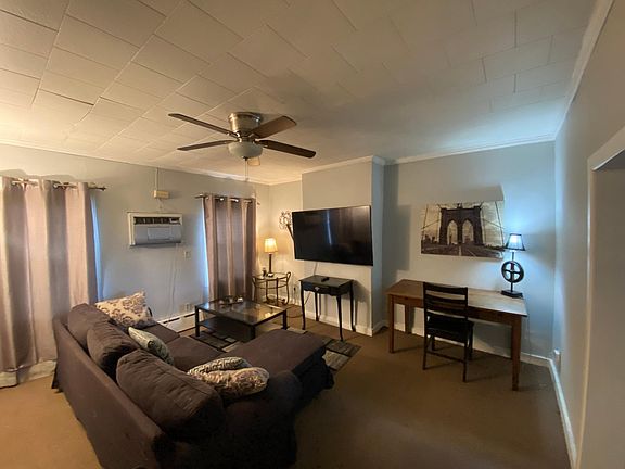 Lovely, bright and cozy furnished apartment has a large living room, eat-in kitchen, 1 bathroom w/ claw-foot tub, 1 bedroom with queen size bed, double closets and a beautiful outdoor terrace. Bus stop is 1/2 a block away, a short 15 min ride straight into Midtown NY, Lightrail 2 blocks away to NY Ferries/Hoboken Path. Metlife Stadium for concerts/sport games is a 20 min ride. American Dream mall 15 min by car or shuttle. Fully Furnished 1 month security deposit due at lease signing Credit and background check required to be paid by applicant