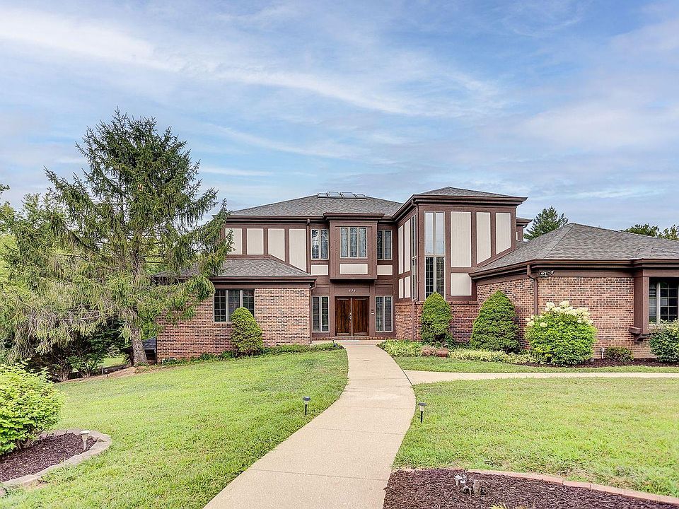 One owner architectural design home. Concrete Basketball / pickle ball court and backboard with professional lighting. This one of a kind home is perfectly placed on 4 lots enhanced with woods for your privacy. Primary main floor bedroom features two en-suite bathroom areas. Shelved office adjoining offering multiple windows. In home office is easily accessible to entertain front door guests. Sometimes you enter a home and know its customized features are timeless. The atrium can display an over 20’ tree. 7 skylights add to the vibe. The deck wraps the back of the home. 2 staircases for easy lower level access which is a walkout. The bedroom housed on lower level has a wall of windows and if you are looking for multi generation living accommodation lower level mini kitchen, full bath large closet and oversized 2 car garage this is your dream. The weight/ work out space is handy. Storage room is ample. Roof installed August 2025. 600 amp service. 3 Trane HVAC units. Original Plan stays.