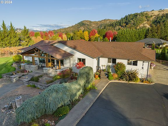 Been dreaming of living on a farm with your own vineyard, orchard, green house -and even a place for guests? Look no further. THIS IS THE PLACE! Nestled at the end of a private drive in a premier West Roseburg neighborhood, this home checks off all of the boxes! With no HOA, private river access, and irrigation rights, you won't find anything like it. There are dual primary suites, one with a sitting room/office attached, a chef's kitchen remodeled in 2016, and even a theater room in the finished basement. The guest house has a kitchenette, full bathroom, living room, office, pellet stove and more. The large shop has room for all your toys and has a separate climate controlled wine room. The barn has two stables, a large tack room, loft and attached chicken coop. The vineyard has just under an acre of Pinot Noir, Syrah and Tempranillo grapes. The orchard has peaches, apples, pears, blueberries, raspberries, plums, figs, roses, japanese maples, hops etc.Call for your own private tour of this slice of paradise!Private Road, Please No Drive-bys.