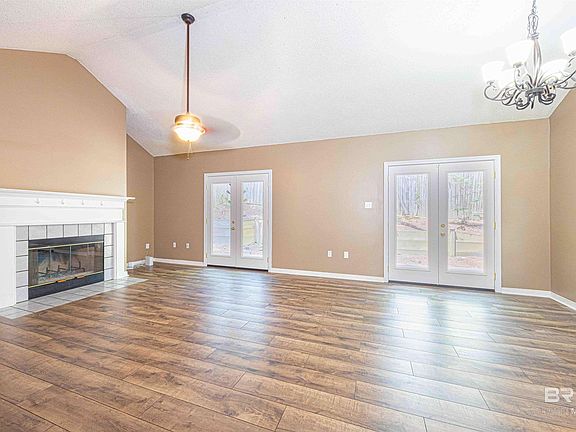 Welcome to 379 Ridgewood Drive in the Lake Forest community of Daphne. This Move-In ready, home offers a split bedroom floor plan with 4 bedrooms, 2 full bathrooms. The spacious living room features a vaulted ceiling, wood-burning fireplace, built-in shelving. and two sets of French doors. The kitchen includes painted cabinetry, a center island, pantry, and a convenient pass-through to the living area. Recent updates include a metal roof, new HVAC system (2024), new water heater (2023), and new French doors (2025). New Flooring installed in commons areas (2025) The attached garage has been improved with Aqua-Stop wall seal, perimeter drain, and a sump pump system with a lifetime warranty. The fenced backyard includes a double gate on the right and single gate access on the left. Backyard extends beyond the fence, making it a larger lot then it appears. No homes across the street offer added privacy. Lake Forest amenities include multiple community pools, tennis courts, playgrounds, a golf course, clubhouse, horse stables, and boat ramp access. .Buyer to verify all information deemed important during the due diligence period. Buyer to verify all information during due diligence.