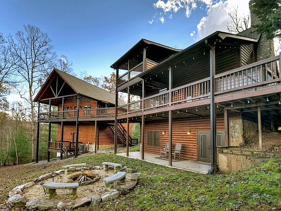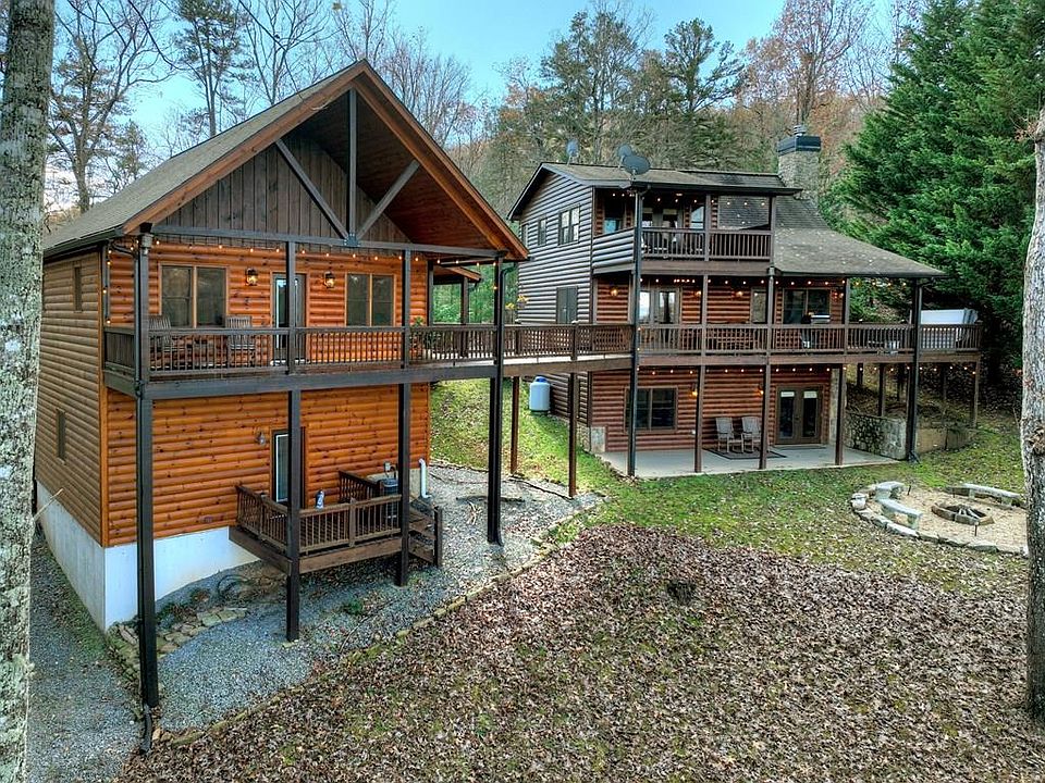Escape to mountain bliss in the heart of the North Georgia Mountains with this stunning rustic timber lodge compound overlooking layered mountain views and a serene setting only minutes to Lake Blue Ridge and Historic Downtown Blue Ridge -- welcome to the Robinson Thomas Lodge! Complete with a main cabin and additional guest house, the property is comprised of four bedrooms, four full bathrooms, two kitchens, two large living areas, sprawling outdoor decks, terrace level billiards room, additional large sleeping loft in guest house, and a full theatre! Walk-out basement leads to a gentle backyard and fire pit with wide-open mountain views. Detached guest house has a full two car garage and workshop beneath with ample storage for the necessary mountain toys! Kitchen complete with granite countertops and rustic cabinetry. Stone fireplace adorns the main house living room and beautiful hardwood floors. Blending rustic warmth and walls of glass overlooking the beauty of North Georgia, conveniently located all while privately tucked away on a lush mountain lot, this lodge won't last long. Call today for an exclusive tour.