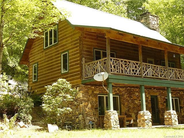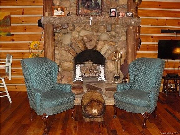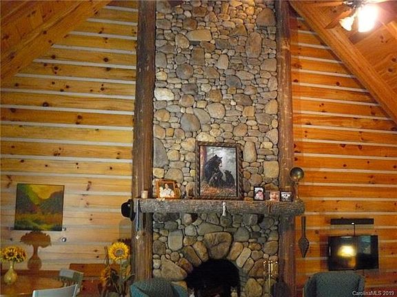 This custom built 2/2 log home is situated in a tranquil location in the Round Mountain Subdivision just beside a babbling creek. Hand-hewn dovetail logs, wormy chestnut floors, local river rock fireplace, custom locust decking and custom railing. A climbing wall on outside river rock chimney and many other unique features.