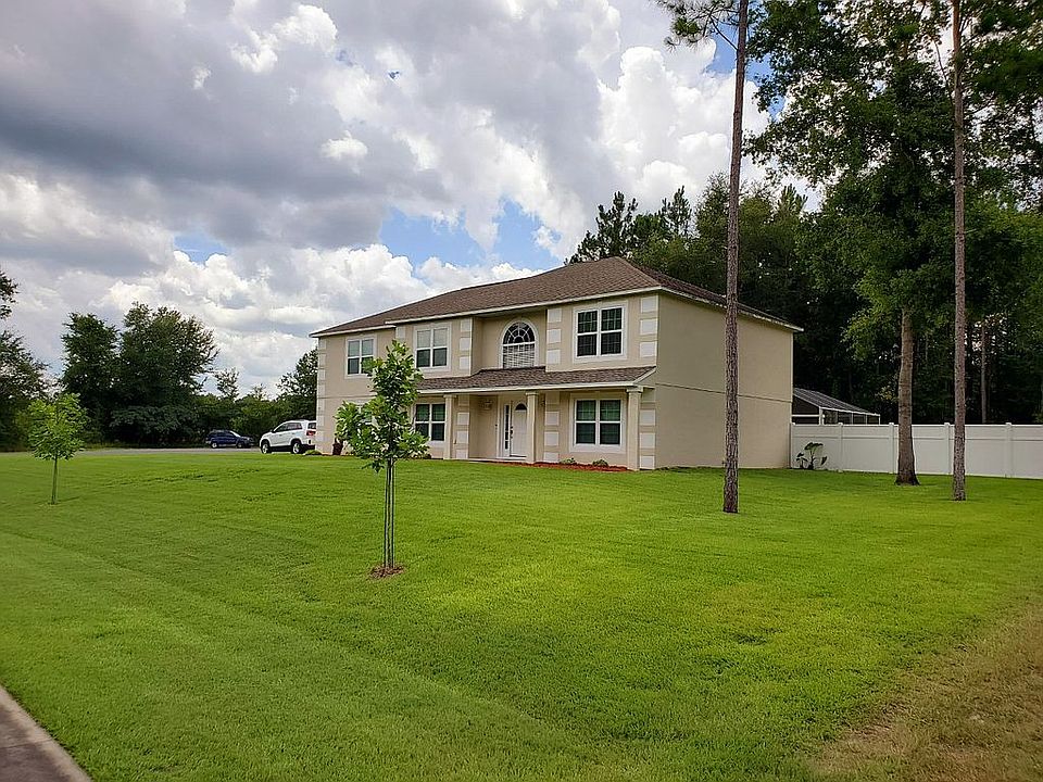 Very spacious 5 bedroom 2 ½ bath home with over 3000 square feet in a quiet subdivision only a few miles from shopping, food, and medical services. This home has been completely remodeled within the last five years. The home sits on .51 acres that appears much larger as it is on a corner lot. The garage has room for 3 vehicles, the driveway can easily hold 4-6 more and the cul-de-sac has plenty of room as well. The yard was sodded a few years back with local centipede and has an irrigation system that is supplied by a shared deep well. The back yard contains a 14x28 solar heated/cooled in-ground concrete pool inside a screened enclosure with a covered patio area with ceiling fans, a grilling deck, a 20x24 shop with full electric service, and a Generac 22K propane (owned tank) powered whole house emergency generator all inside a 6’ white vinyl privacy fence. The windows were upgraded to an insulated dual pane a couple of years ago and the whole house was painted inside and out. Inside on the first floor has a large kitchen with tons of storage in the full height upper cabinets and plenty of lower cabinets and drawers, all with soft close. Lots of solid surface counter space and multiple pantries. All Whirlpool Gold appliances and a garbage disposal. Next to the kitchen is a large breakfast nook that currently has a table for 6 with room to spare. The family room is wide open to the nook and kitchen and has plenty of space for relaxing or entertaining. Additionally, there is a large living room and dining room for even more entertaining space, a half bath, and a large two-story foyer. Upstairs contains a very large open loft area, 5 bedrooms, 2 full baths, and laundry. The master bedroom suite is quite large and has vaulted ceilings. The walk-in closet has a generous amount of space and the bath is large with storage. The second of the bedrooms is larger than the rest, but the rest are approx. 12x12 each and all have good size closets. The subdivision offers all underground utilities to include Clay electric, Xfinity tv, internet, and phone services, AT&T phone and fiber-optic internet services, and city water. For safety, sidewalks, fire hydrants, and community street lighting are all in place. Westside Elementary is within walking distance and is a 14 time “A” school.