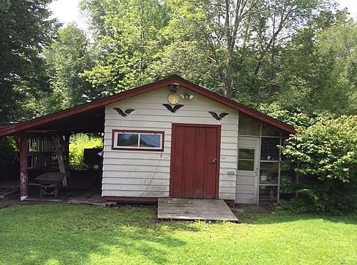 Cozy L-Ranch, with a GIANT private farm-like yard. Large open kitchen has dining area that opens to an enormous partially covered deck which overlooks very private fenced yard for entertaining. Fireplace in living room, hardwoods in bedrooms, walk out basement, . This is a very well cared for home with a brand new roof ! Two out-buildings/sheds, dog kennel, one with electricity & water ! Economical gas heat, whole house fan. This home is priced to sell and a little cosmetics will make this home shine !!