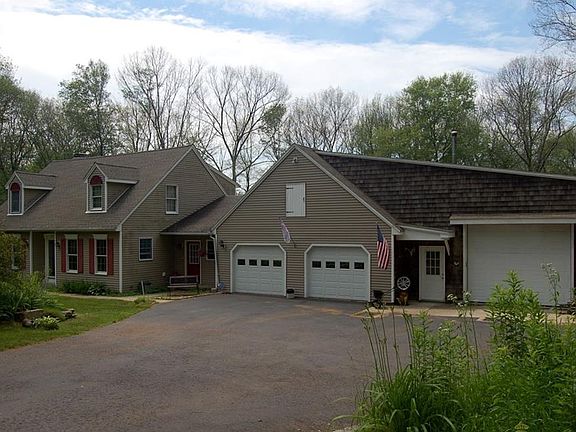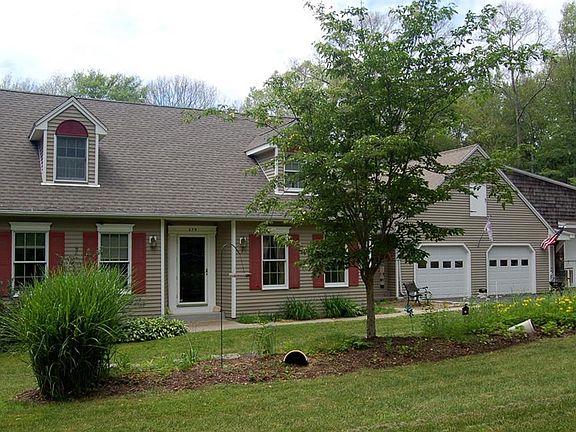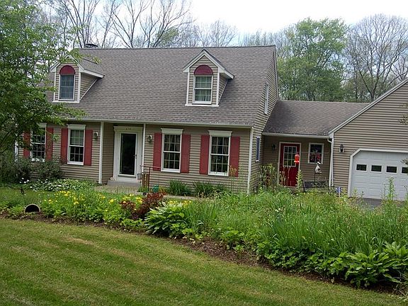 A short ride in the country will lead you to this cozy setting that features a classic New England Cape with 4 bedrooms, one on the first floor, a country kitchen, a fireplace, as well as an attached 2 car garage. But wait, there's more!! Next to the garage is another huge heated garage, approximately 800 square feet with 2 electric hydraulic car lifts and a 12x12 garage door--truly a mechanic's dream (hide-a-way). There's lots of space to accommodate at lease 4 vehicles and even a boat. The garage has been the site of many hours of antique and classic car restorations. This home features an eat in country kitchen that is open to the living room with an Ashley wood burning stove. The slider off the eating area leads to the private back yard deck with the Sun Setter Awning providing shade from the hot sun. The family room is currently being utilized as an office. The dining room , with closet space, was at one time, the first floor bedroom. Summer nights are a lot more comfortable when the whole house fan is turning up a cool breeze. The back yard has a small garden area, a covered potting area and a 12x16 shed. The house roof, well pump and foot valve have been recently replaced. Now it's time to take a short drive in the country and check out this interesting property.