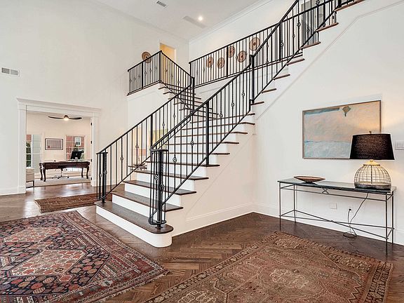 Stately River Oaks–custom reno by Albertine. Grand entry w/ herringbone flrs, soaring ceilings, nat’l light. Handsome Office. Lovely Dining Rm. Great Rm feat 21’ ceiling, wet bar, gas fp, TV nook, stunning windows. Chef’s kitch: Sub 0 fridge/wine; Sub 0 freezer; Wolf 6-burn gas range; dble ovens; isl for 6; lrge pantry. Primary dn w/ laundry,dual baths,walk-ins. 4 ensuites up w/ walk-ins. Media rm-projection & sound. Add’l laundry up. ~6,500 SF; ~1 acre;pool/pool house (bath & bar). 3 c att gar