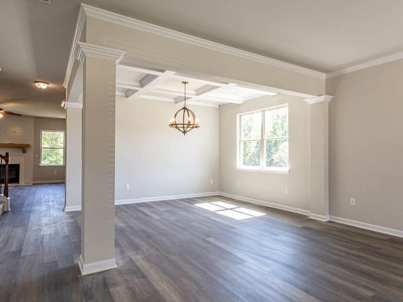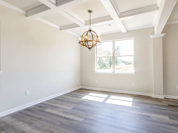 Bright open living room.Bedroom on the main is perfect as a guest room.Open concept kitchen with large granite island overlooking the great room with fireplace.Homeowner's suite with a sitting room, expansive walk-in closet, dual vanity, soaking tub, and oversized shower.Dining room with coffered ceilings.Home and community information, including pricing, included features, terms, conditions, availability and sales procedures related to appointments subject to change without notice. All images are for illustrative purposes only and individual homes, amenities, features, and views may differ. Images may be subject to copyright.