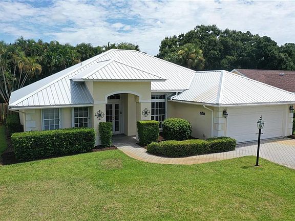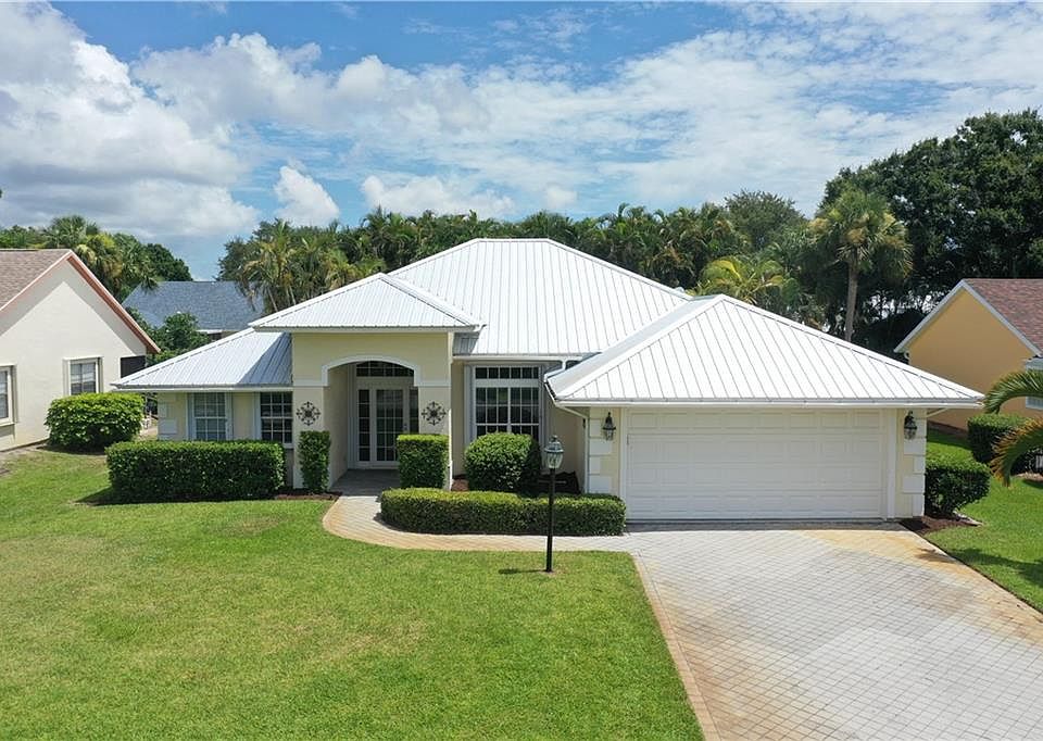 Available immediately - unfurnished annual lease! Immaculate & spacious 3 bed, 2 bath, 2 car garage home with a fully fenced back yard for your pups! Walkable neighborhood - situated in Central Vero Beach, in the quiet and gated neighborhood of Woodbridge Estates. This CBS, 1,915 sq ft home sits on a nicely landscaped private lot on a cul-de-sac. It features a newer metal roof, accordion shutters for easy storm prep, new carpeting in the bedrooms, fresh paint, tile floors, open kitchen design with white shaker cabinetry, granite counters and S/S appliances. Primary bedroom with private access to large screened porch and open patio. Rent includes lawn care, trash / recycling & exterior pest control!