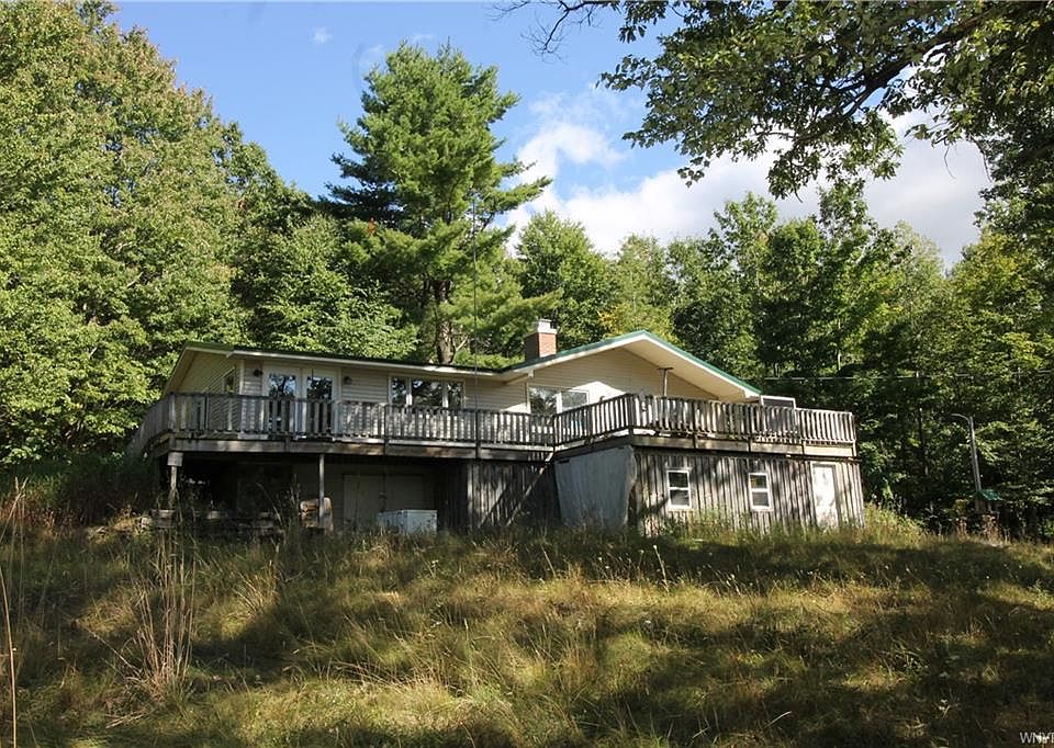 This year round home is a perfect getaway with pond and a wooded setting located near state land. Home has been unoccupied for a number of years and needs some tlc. Great opportunity to own this ranch featuring family room, living room, eat in kitchen, and the master bedroom has its own bath with tiled walk in shower. Steel roof, vinyl siding, large deck and detached building is insulated and would make great workshop. Home is being sold "as is". Buyer responsible for testing septic and well.