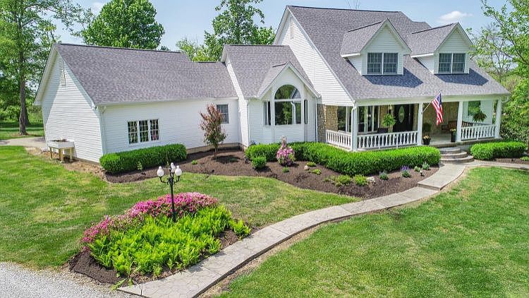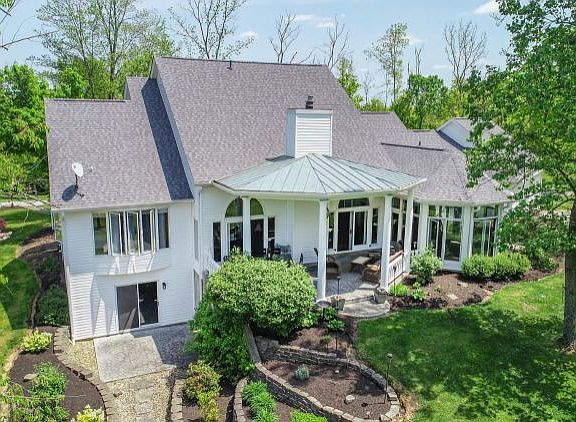 Amazing updated home sits on picturesque 5+ acres. Entertainers dream w updated gourmet kitchen, finished deluxe walkout LL, beautiful glass solarium, 2 covered porches, 18ft soaring ceilings, stone fireplace w new buck stove. 1st floor primary suite, 2 car oversized attached garage +2 car detached garage for toys. Roof and siding 2021, Geothermal 2017. So many amenities. Come see this immaculate home for yourself. Less than 15 min from 275. Agent Owner