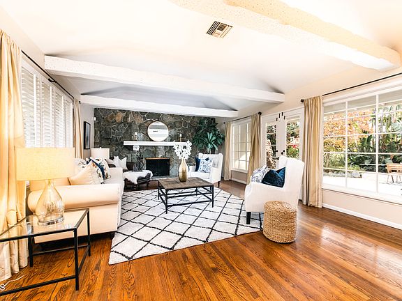 Located on one of the most beautiful streets in lower Hastings Ranch, this home exudes warmth from the moment you drive up. Upon entering you are welcomed by a stunning living room with open beam ceilings, fireplace and French doors that lead to an inviting outdoor eating and entertainment area. Back inside you will find a cozy formal dining room and an inviting kitchen. Down a couple of steps and you enter into an expansive family room with a fireplace as well. Sliding French doors will open onto a small sitting area that overlooks a refreshing in ground pool. In addition there are 3 bedrooms and 2 bathrooms as well as central heat and air, solar panels, security system, office area next to garage and RV parking.