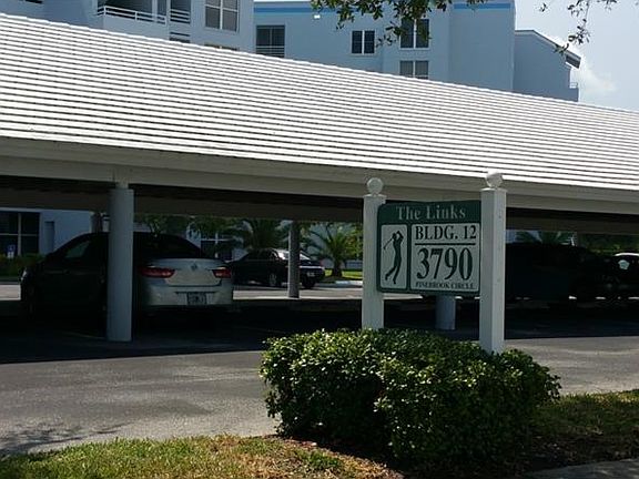 Fully furnished, 2 bedroom, 2 bath, Pinebrook Condo (the Links) with carport. Very close to clubhouse and heated pool with spa, fitness room, and more.... Beautiful golf course views!!! Sliding glass enclosed balcony allows year round comfort! Indoor laundry with washer and dryer included. Split bedroom plan, exterior storage. Short walk to shopping, restaurants. Very short drive to Gulf beaches and incredible sunsets! No extra golfing fees to live in Pinebrook. Golf course open to public. Pinebrook is an ideal vacation destination and the perfect year round retreat!