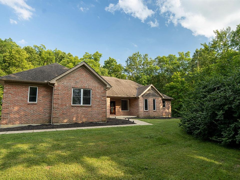 Beautiful custom 6 BR brick ranch w/ full finished walk out & soaring ceilings. Almost 5,000 soft. Prvt wooded setting on 5 acres. Gourmet kitchen w/island.4 season rm off kitchen. Laundry room on each floor. Lrg Master w/ gas fire place & private deck.Natural light fills the home w/ beautiful views. Must see!