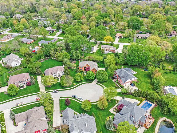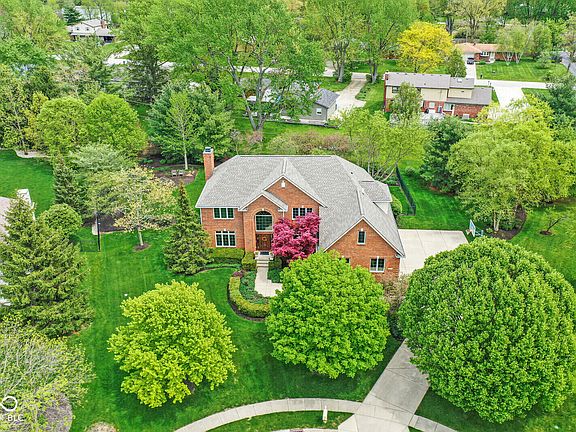 Nestled in a quiet, back cul-de-sac in West Carmel's Huntersfield enclave, this six bedroom, custom-built home offers an envious mixture of practical and aesthetic quality. The striking landscaping was professionally designed by Mark M. Holeman and welcomes everyone to a home that presents a New Roof and New Upstairs Furnace and A/C (all, installed in August 2024), newly refinished hardwood floors on the main floor, and a freshly painted interior. In addition to multiple main floor gathering areas, a separate fifth bedroom with full bathroom (currently serving as an office, with built-in desks and storage cabinets) would work well as "in-law" quarters. A large sunroom captures views of the private backyard landscaping and connects the kitchen and family room. Custom details include crown moldings; built-in bookcases & cabinetry; warm, hardwood maple kitchen cabinets; and large windows. The second floor primary suite provides a large, private retreat (18x15) and an immense dressing room (17 x 21). The updated primary bathroom provides effortless space, a walk-in shower, freestanding soaking tub, & fine finishes. There are two more full bathrooms that serve the remaining three upstairs bedrooms. Entertaining is flexible with the finished lower level. The (32 x 15) "third family room" can host movie/board game nights & "hang-outs" as well as a warming fireplace, functional wet bar, & built-in bookshelves and storage cabinets. The basement also contains a sixth bedroom (currently a fitness room), with a full bath nearby. The basement media area is wired for surround sound speakers while the entire home is wi-fi and high speed internet enabled. The garage & basement storage contain ample shelving. The garage floor was recently professionally finished with durable, low-maintenance poly-urea coating. The landscaping includes 15 varieties of trees, countless perennials for color throughout the seasons, & an irrigation system for the entire yard & front planting beds.