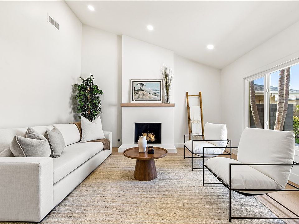 Inspired by timeless Scandinavian design, this Seal Beach home has been thoughtfully renovated to provide a modern yet comfortable abode. Upon entry, guests are greeted by soaring vaulted ceilings, an abundance of natural light, and luxurious finishes such as European white oak flooring and Taj Mahal quartz countertops. The living space features a floor-to-ceiling gas fireplace, providing a cozy ambiance. The eat-in kitchen opens to the dining room and back yard, perfect for indoor/outdoor living and entertaining. The kitchen features all-new cabinetry, designer fixtures, and stainless appliances, including a double oven and built-in microwave drawer. The laundry room is adjacent the kitchen and is built for full-size stackable machines. Convenient storage cabinets, countertop space, and access to the side yard make this an exceptionally functional area. Down the hallway, three bedrooms and two full bathrooms complete the home. The primary bedroom features a beautiful en-suite bathroom, complete with dual-sink vanity and spacious walk-in shower. All mechanical has been updated, including a new 200-amp electrical panel with complete rewire, and updated plumbing and HVAC, including central A/C and heat. Situated on a prime oversized lot with RV/boat parking and a large backyard with mature fruit trees and an herb garden, this home is a dream! Located in the award-winning Los Alamitos School District and close to Old Ranch Country Club, the beach, and fantastic shopping and dining. Don’t miss this exceptional home!