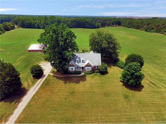 10.6+ acre country estate in the heart of Powhatan Courthouse area, convenient to community activities, schools & shopping! Spacious brick Cape. Open floor plan, wood floors throughout, lovely moldings & large windows with lots of natural lighting. Excellent property for horses and livestock, open acreage that can be fenced, plenty of room for gardening & outdoor activities. Not in a subdivision, zoned agricultural, no covenants or HOA! The foyer opens to the great room & dining room with columns, crown & chair rail moldings. The great room has gas fireplace flanked by built-in bookcases & opens with French doors to a lovely sun room overlooking the scenic acreage. The sun room & rear hall have access to the screened porch. The beautiful kitchen has a sunny dining area with bay window, lots of recessed lighting, solid surface counters, island with cook top, built-in desk, wall oven & built-in microwave. The rear hall has half bath, access to the laundry room with lots of cabinetry, washer and dryer, pantry & access to the large two-car garage with attached 21x5 storage room. The master has tile bath & separate vanities. Large detached barn. Generator. Huge walk-up attic.