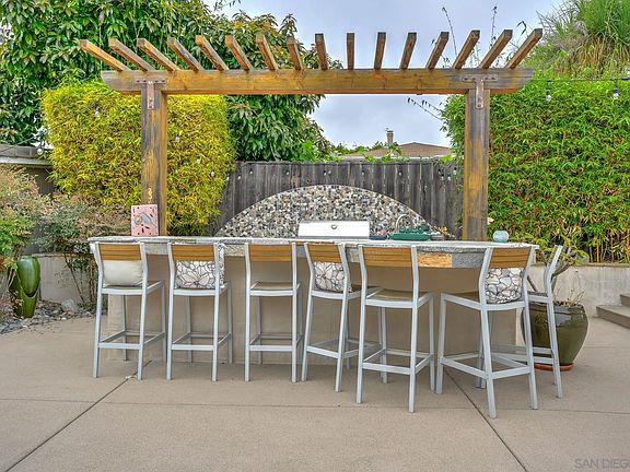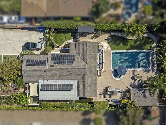 Motivated Seller. Welcome to your dream home in Paradise! Nestled in the heart of the beautiful coastal neighborhood of Old Carlsbad, this single-story ranch home by the beach is just two blocks from top-rated elementary, middle, and high schools. The main house offers 4 bedrooms and 2 bathrooms. completely remodeled down to the studs with new drywall, insulation, electrical and plumbing in 2012. Its curb appeal is highlighted by lush tropical landscaping, Inside, you'll find tigerwood vinyl floors and natural wool carpet in the bedrooms, creating a warm and inviting atmosphere. The open floor plan is perfect for entertaining. The oversized primary suite features his and hers closets and dual sinks. Step outside to enjoy elevated sunset and ocean views in a tropical paradise designed by award-winning landscape architect Nick Martin. The private backyard is an oasis with a stunning saltwater pool with a Baja shelf, spa, firepit, and ample space for lounging and entertaining. Additionally, there is a detached pool house with its own bathroom, outdoor shower, and outdoor kitchen, ideal for hosting guests or generating extra income. The property boasts a variety of fruit trees, including pineapple guava, dragon fruit, tangerine, and Meyer lemon. There's even a custom-built surfboard shed for all your watersport gear! Additional upgrades include an owned solar system (no electric bill), a lifetime roof, an A/C system, a whole house fan, soft water system, EV charging, RV parking, and a charming enclosed grass courtyard. Don't forget the massive storage loft above the garage!