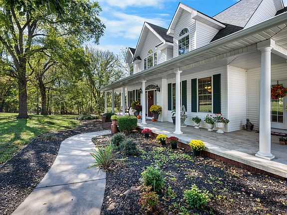 Storybook Charm Meets Modern Country Luxury on 4+ Acres North of Bolivar, MO! Welcome home to this picture-perfect 4-bedroom, 3.5-bath home with wraparound porch, stone fireplace, and breathtaking panoramic views of its serene 5-acre setting. From the moment you arrive, the storybook curb appeal and inviting front porch set the tone for this exceptional property. Step inside the grand two-story great room, where a floor-to-ceiling stone fireplace anchors the space and large windows frame the stunning countryside views. The spacious kitchen features granite countertops, a center island, and abundant cabinetry, with both formal and casual dining areas perfect for entertaining. The casual dining area opens directly to a wraparound back deck spanning the entire west side of the home -- ideal for relaxing evenings and watching sunsets. The main-floor primary suite offers a luxurious retreat with a soaking tub, walk-in shower, double vanities, and private deck access. Also on the main level is a home office with glass French doors off the foyer -- perfect for remote work or study. Upstairs, you'll find two large bedrooms connected by a catwalk balcony overlooking the great room, plus a bonus living area. Over the garage you'll find a fourth bedroom or flex space with a half bath. The property also includes an impressive 1,800 sq. ft. heated and cooled shop with two vehicle bays, tall ceilings, and plumbing -- perfect for hobbies, equipment, or small business needs. Recent updates include refinished hardwood floors on the main level and meticulous care throughout -- this home is truly move-in ready. Located just north of Bolivar across the Francka Bridge, this property offers peaceful country living only 10 minutes from Citizens Memorial Hospital and Bolivar schools. Enjoy the perfect blend of luxury, privacy, and convenience -- all within minutes of town. This pristine home on 4.3 acres in the Bolivar School District is the one you've been waiting for!