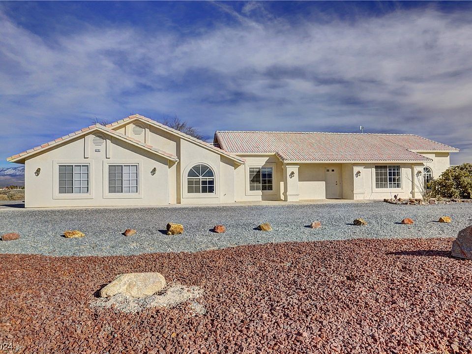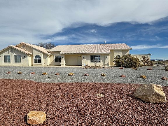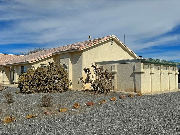 Welcome to your desert oasis! This 5-acre property, zoned for horses, boasts breathtaking views of the surrounding mountains. The 4-bed, 2-bath home offers 2,021 sq ft of comfortable living space. Close to BLM land, so bring your toys, perfect for horseback riding or ATV riding. After a day of exploring the trails, unwind in the private hot tub located in the private courtyard off the master bedroom. Private well and septic.