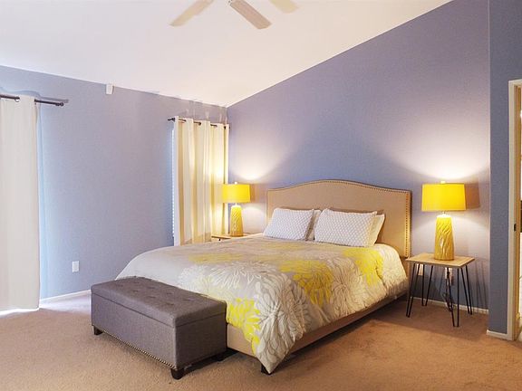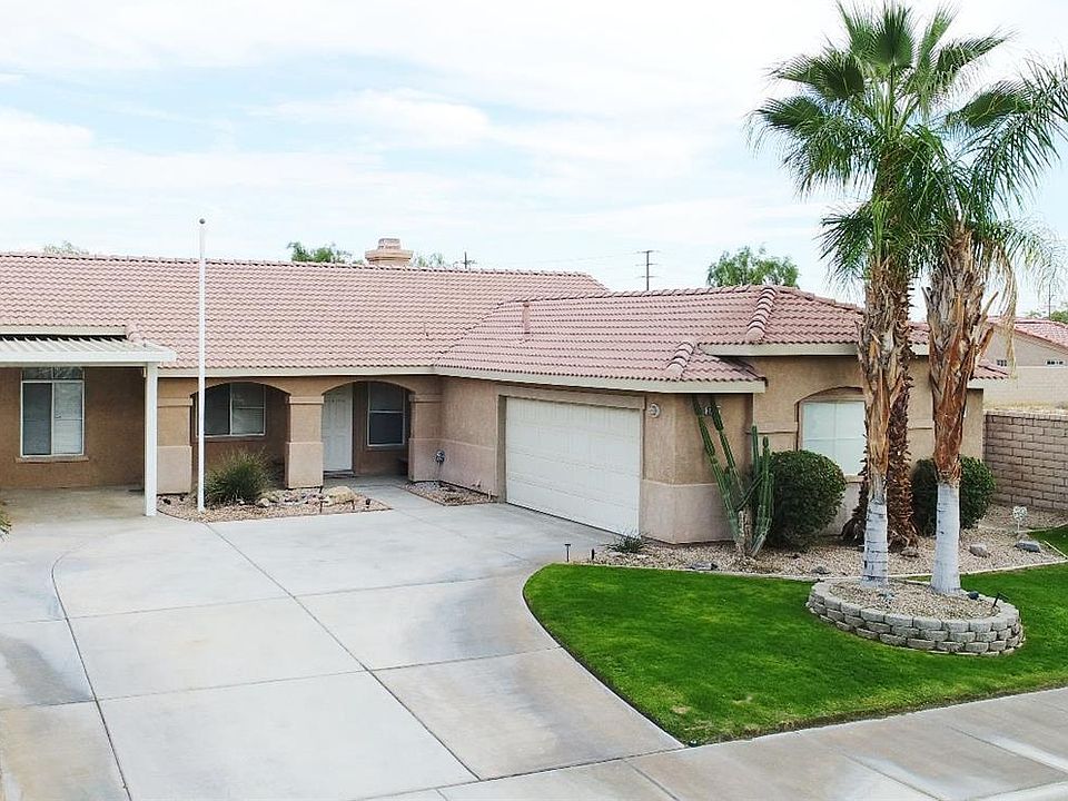 Must see this beautiful Palm Desert Pool and Spa home. The home features Granite counter tops and modern glass back splash in a spacious kitchen. Master bedroom suite has a walk in closet and office area can also be used as a nursery; work out area or converted into a huge walk in custom closet! Second bedroom is very spacious with it's own walk in closet. Third bedroom is bright and natural light comes in enhancing the custom paint. Indoor laundry room with washer dryer hook ups and cabinetry. Easy access to garage from laundry room. Exterior features a great patio area completely gated pool and spa wonderful area to relax and entertain enjoy minimum maintenance in the back yard. Front has a driveway and extra covered patio cover for larger truck or vehicle to park. Home is centrally located near shopping and entertainment and minutes from the I-10.