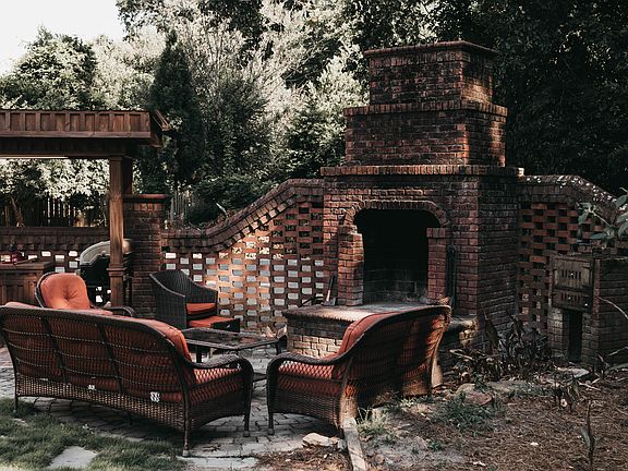 Wonderful outdoor living areas! A brick fence surrounds the backyard with a large fireplace, outdoor kitchen & decorative patio. Barn with workshop area and additional storage up. Basketball court. Two front porches. This all brick house sits on a double lot with a beautiful green space perfect for throwing ball. The 3BR, 2.5BA home features granite countertops in the kitchen with stainless steel appliances. Large master bathroom has a walk-in closet, spacious bathroom with a claw foot tub and a shower. Fresh paint, large windows and hardwood floors throughout. This one is a must see!