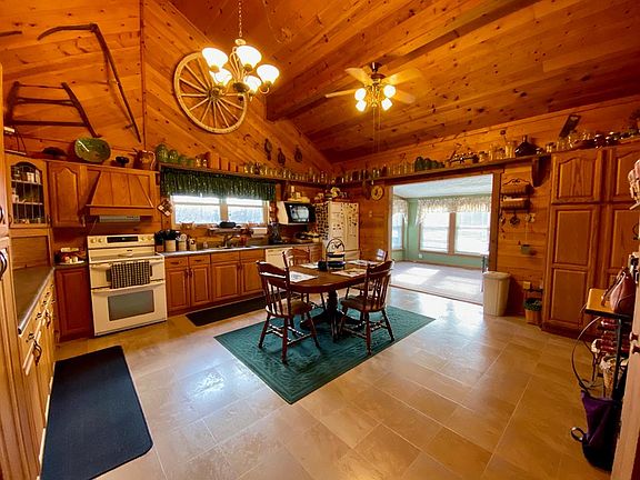 Remodeled Ranch style home that is tastefully decorated and in move-into condition. It is nestled on 43.7 acres of level, wooded, and fenced areas. The home contains approximately 2,250 square feet of living space built over a crawl space. It contains an inviting living room with gas logs, and beautiful wood walls and ceiling, formal dining room , lovely spacious updated kitchen with wood flooring, sun room, utility room, three bedrooms, & 2 full baths with tile flooring. Additional amenities include: Two car detached garage with a studio apartment attached that offers a living room, bedroom, kitchenette, and bath. There is A 30 x 50 barn equipped with electricity, water, and horse stalls. There is mobile home hookup w/ concrete pad, pond, and utilities . Two additional outbuildings,and lean-to is also on the property. There is a gas well on the property that heats the gas logs only, There are 3 paddock areas. A 12' x 36' Screen enclosed porch off the sun room,