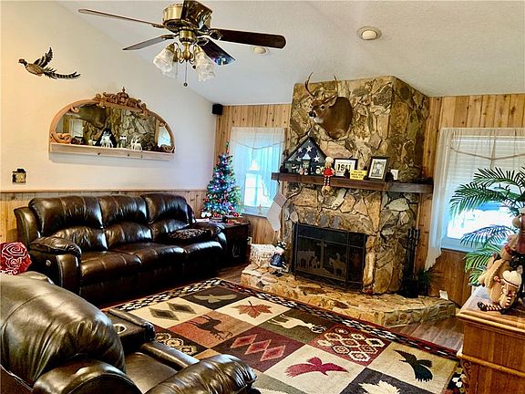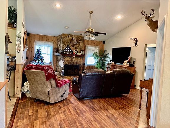 As soon as you drive up the long tree-lined driveway, you know you have arrived somewhere special. So much love and care have gone into designing this beautiful property, from the custom three bedroom, two bath home to the outdoor living spaces. The spacious front porch beckons you inside the home and you are greeted with an open-floor plan with site lines to the living room with majestic stone fireplace, sunny dining room and well-appointed kitchen with granite countertops and newer stainless appliances. The split floor plan allows privacy for the large master suite with dual walk-in closets, double sinks, inviting garden tub and walk-in shower. On the opposite side of the home, the two guest bedrooms share a bath featuring a beautifully tiled walk-in shower. There is also a quiet office space waiting for you behind a glass door, where homework or office work can be uninterrupted. Upon exiting the back of the home, a lovely screened inground pool with paved patio allows plenty of room for entertaining or enjoying the sunset. A hummingbird garden with intentionally-planted shrubs and flowers is a peaceful retreat to relax. Adding to the outdoor beauty and serenity is a fully-stocked pond. The property includes a covered pole barn with two horse stalls and concrete floor, with room underneath to store an RV. An enclosed barn with roll-up door is perfect for a workshop or equipment room. A surprise awaits when you open the shed to find a wonderfully useable space that is drywalled, has a storage loft and two window A/C units…this would be a perfect man cave or “she shed.” There are two wells: a shallow well and a deep well. Such a lovely property!