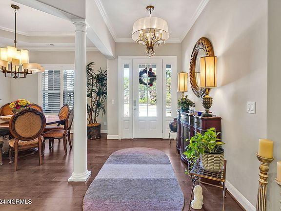 20 minutes to ILM and 15 minutes to shopping and restaurants in Leland, as well as access to a beach clubhouse on Oak Island for use by all residents. This incredible, like-new, completely turn-key home is ready for you to move into. Just driving into the gated community of The Bluffs on the Cape Fear invokes a sense of peace with the winding road, the natural beauty, the wooden bridges...then this home; the stunning paint color, stone work, landscaping and gorgeous front door! When open, you are greeted with incredible natural light, in part, from
