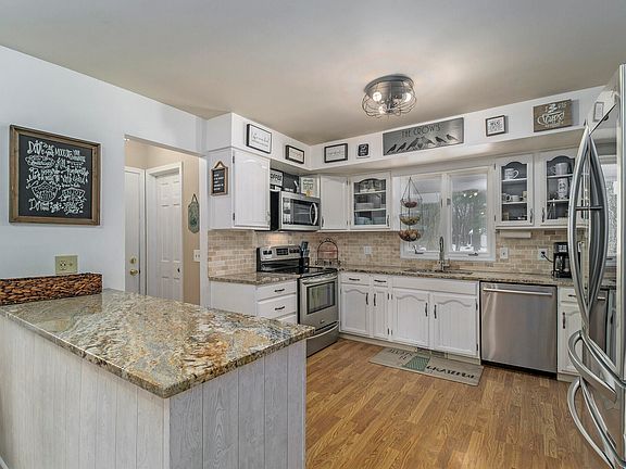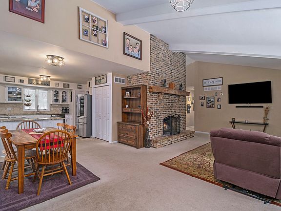 This well appointed and nicely updated spacious ranch home is sure to please The main floor boasts vaulted ceilings, natural brick fireplace, updated kitchen granite countertops, updated appliances, 1/2 bath coming off attached garage, large open concept living/dining room which flows nicely to attached 3 season room. 3 main floor bedrooms with 2 add'l full baths. The lower level fully finished walkout includes 2 add'l bdrms, full bath, spacious family room fireplace, and ample storage space. Recent updates include; insulation throughout, new a/c, water heater, new underground sprinklers, plus much more.