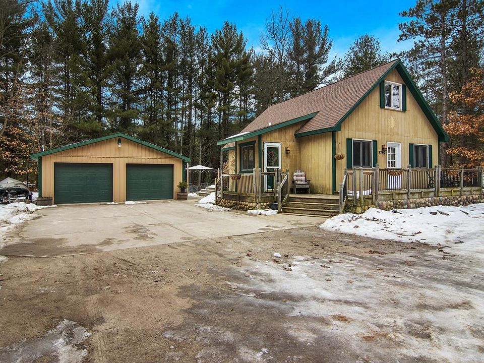 Charming 2-bedroom, 1-bathroom, 1.5-story home nestled on a spacious 2.5-acre wooded lot, and conveniently situated just 25 minutes from Downtown Traverse City and West Bay. The inside of the house features a mudroom and a main-level primary bedroom as well as a generously sized bathroom. Upstairs you'll find the second bedroom. Going downstairs you'll find a mostly finished basement equipped with knotty pine tongue and groove walls and a large laundry room. Within the last 3 years, some of the updates to the home include a new washer and dryer, water heater, and kitchen stove. Just off the back deck of the home, you will find a 21'x18' patio ready to be enjoyed. Also just outside the home is an insulated 32'x24' detached garage with a wood-burning stove, a 220 amp electrical service, and another 14'x10' storage shed just behind it. Not only does the garage offer a place to park your vehicles but it also makes for a great potential workshop or additional storage space. Situated towards the back of the property is a 30'x12' greenhouse built in 2020 and equipped with running water availability as well as additional fenced-in gardening space. This property is Move-In ready and offers a perfect blend of tranquility and accessibility!