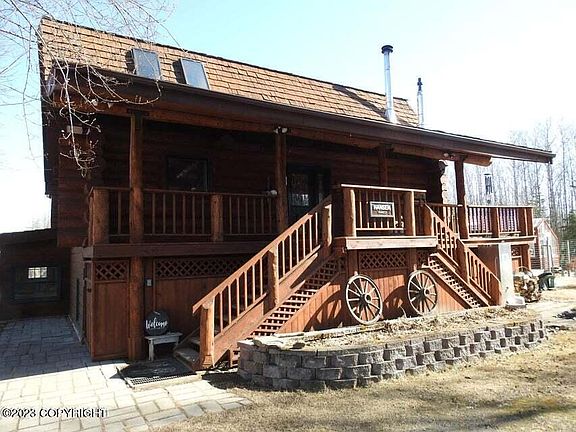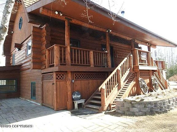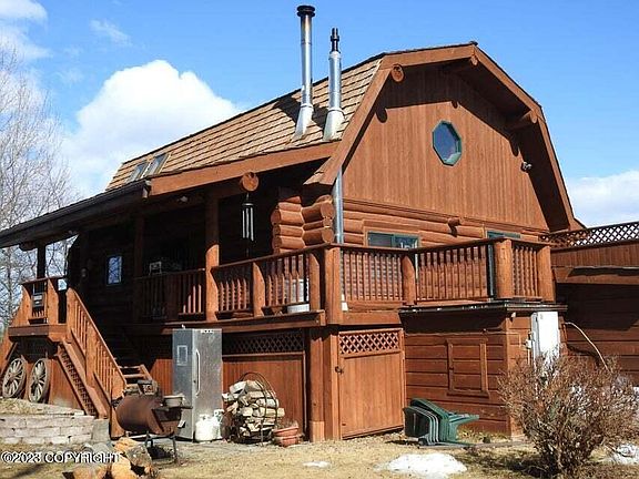 This beautiful Alaskan log home sits on just under 10 Acres. Amazing craftsmanship and a very spacious floor plan are just the start to the phenomenal features of this truly Alaskan property. Three floors of awesome views. The entire third floor is an owner's suite complete with office and library. Two ground level arctic entries, and an amazing, elevated deck enhance this country living estate.