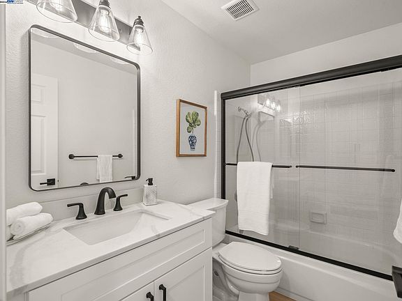 Welcome to the charming Cobblestone gated community in the heart of San Ramon. This lower-level, end-unit condo boasts an ideal location with no back neighbors and the largest backyard in the community. With ample recessed lighting and an open layout, this home is both warm and inviting. The condo has been completely remodeled, featuring waterproof luxury vinyl planking throughout, custom bathrooms, and custom cabinetry that offers abundant storage. The primary suite includes a walk-in closet, and the kitchen is equipped with a walk-in pantry. Step outside to enjoy the sounds of birds in your freshly paved and landscaped backyard. On warmer days, the community pool and spa provide a peaceful place to relax, or you can take a leisurely stroll through the well-maintained greenbelt. Conveniently located near business parks, City Center, downtown Danville and Walnut Creek, Costco, and numerous shopping and dining options, you'll love the central location and easy access to everything you need. HOA dues include water and trash. The property also features a one-car attached garage, a covered carport, and guest parking, with laundry facilities located in the garage. Don't miss out on making this gem in San Ramon yours!