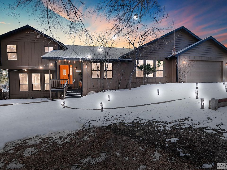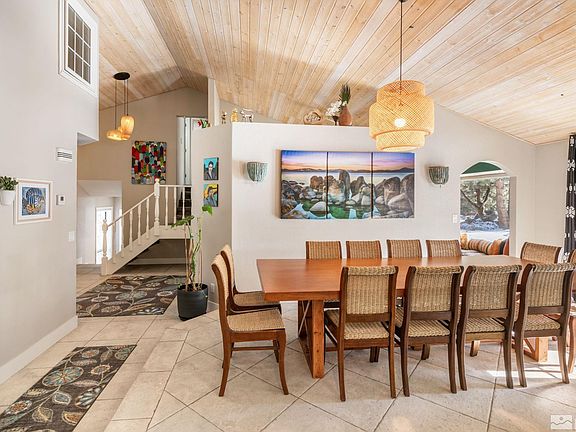 Nestled on a sprawling acre surrounded by majestic pines and vibrant wildlife, this stunning Lake View Estate offers the perfect blend of luxury and tranquility. The main residence boasts an impressive 2,607 sqft of thoughtfully designed living space, featuring four spacious bedrooms, including two exquisite primary suites, and three and a half beautifully appointed bathrooms., Step into the heart of the home, where an expansive kitchen awaits, adorned with elegant granite countertops, soft-close cabinetry, and a professional series gas range paired with stainless steel appliances. The island kitchen seamlessly overlooks the inviting living area, complete with a cozy pellet stove—a perfect spot for gathering with family and friends. Adjacent to the kitchen, the dining room provides ample space for entertaining, creating a warm atmosphere for memorable gatherings. The property also features a remarkable 1,000 sqft guest house, built in 2006, offering two comfortable bedrooms and one and a half bathrooms. This charming retreat is equipped with ceiling fans and luxurious LVP flooring, ensuring a cozy and stylish environment for visitors. Both the main and guest homes boast their own beautiful patios, ideal for enjoying the serene views and fresh mountain air. A built-in BBQ right off the guest house adds to the outdoor entertainment options, making it perfect for summer gatherings. For car enthusiasts and hobbyists, the estate includes a remarkable six-car garage, with a spacious 930 sqft area that provides additional storage above. With plenty of room for all your toys, this property is a true haven for those who enjoy the great outdoors. Conveniently located just thirty minutes from the stunning shores of Lake Tahoe and fifteen minutes from Reno, you'll find easy access to shopping, local restaurants, and schools. Experience the best of luxury living in this breathtaking Lake View Estate, where nature's beauty meets refined comfort.