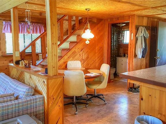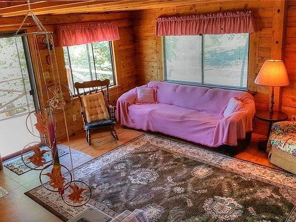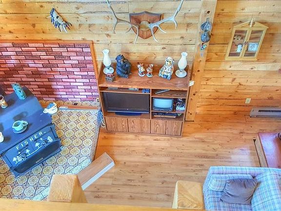 Rustic log home on 5 acres w/ INCREDIBLE views! (Incredible price, too.) Wrap-around deck & upper deck to take it all in. Very spacious feel for the sq ft, open floor plan, gorgeous, pine accents, brick/tile hearth w/ an awesome wood-burning stove. Beautiful open staircase, nice kitchen with tile-top eating counter...how about a soak in a claw-foot tub? This is the perfect mountain cabin, rustic and comfortable. EZ year round access on county maintained roads. Private fishing rights in 12 miles of river & stocked ponds. Rare 5-acre lot with shed is level and ready for any additions/improvements. Great mix of trees and meadow. Don't miss it! Lot 329,330 SS F-2