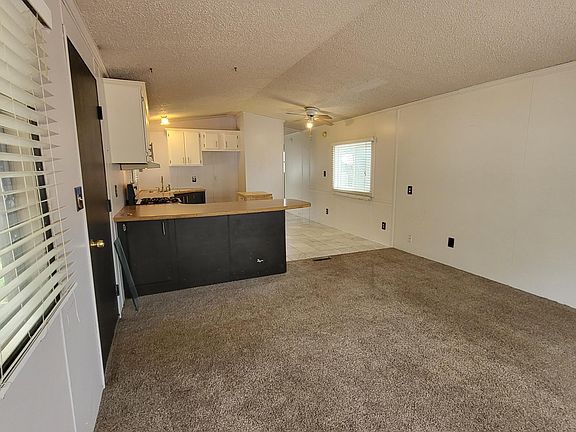 1987 Palm Harbor Manufactured Home. Opens into spacious living area with an eat-in kitchen. Laundry area in hall, with bathroom just before the large bedroom that has an abundance of natural light,