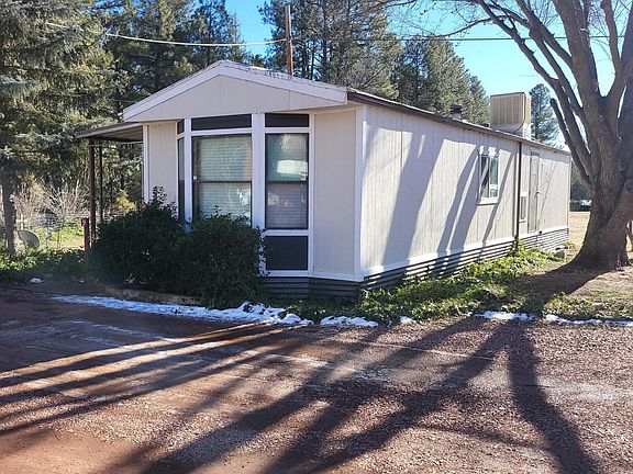 Space is at end of park with small yard & edge of seasonal creek that has large Pine trees bordering.