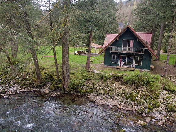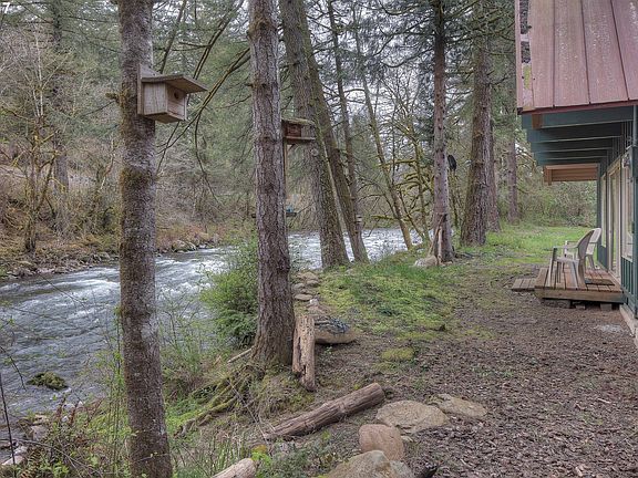 Beautiful private retreat with 240' frontage on Washougal River! Almost an acre of level usable land with low bank river frontage at the end of private easement driveway. Chalet style home with 3 bedrooms, 2 baths, connects to second living space with a second kitchen, 2 attic bedrooms and bath. Small woodshed and pump house. Seller installed new ductless heat pumps and updated panels.