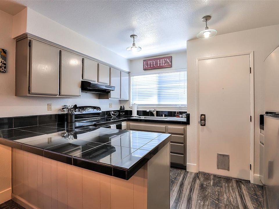 - KITCHEN FEATURES: Electric Range/Cooktop, Range/Oven Free Standing, Refrigerator, Counter - Stone