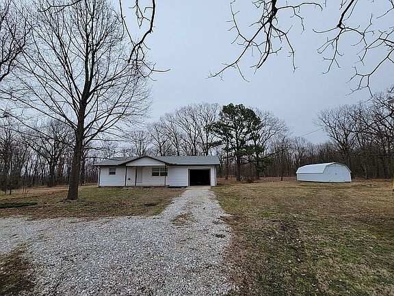 2 bedroom, 1 bath, 1 car garage with front porch. All electric, well, lagoon. Sits on 32 mostly wooded acres with access from MO-13 and access from E 380th road. Great Starter home to live in while you build your Dream home in the woods.