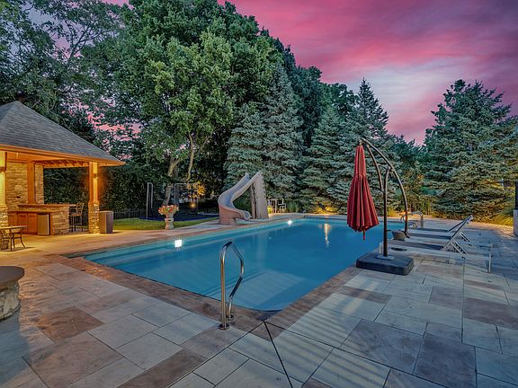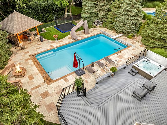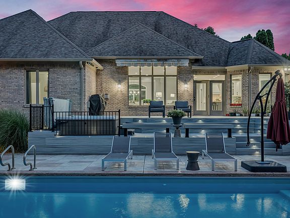 Live Like You're on Vacation - Every Day! This custom-built ranch with a full basement in the heart of Center Grove's Highland Park neighborhood delivers over 5,400+ sqft of thoughtfully designed bright living space, featuring 5 spacious bedrooms, 3.5 baths, large great room, 2 fireplaces, nice bar in family room in basement with refrig,dishwashwer,wine cooler & TV, a dedicated workout room, and your very own movie theater!! But the real showstopper? Step into your private resort-style backyard featuring a 40x20 heated in-ground pool with a slide, multi-level trex deck with a hot tub, and a beautiful outdoor pavilion with bar seating - perfect for weekend hangouts or impromptu pool parties. Cozy up around the crescent-shaped gas firepit and enjoy a yard surrounded by mature trees for maximum privacy and that peaceful, tucked-away vibe. This one-of-a-kind home is where every day feels like an every day getaway. Welcome Home!