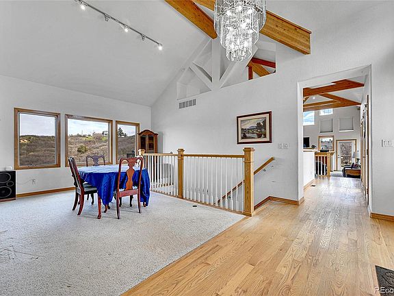 Gorgeous views & tranquility welcome you as you drive up to this incredible property. Here you'll find a timeless ranch-style home with 36+ acres of rolling hills & panoramic scenes that stretch along the valley. Enjoy country living with space for horses & livestock. 3 bedrooms & 3 baths provide room for family or guests. The main floor features multiple windows, vaulted ceilings, & large beams. The kitchen boasts an eat-in area, walk-in pantry, prep sink & plenty of counter space. Just off the kitchen is a sunroom. The great room is sure to become a favorite gathering place. Open to the kitchen, this expansive room has vaulted ceilings, stone fireplace, massive beams, & several windows to enjoy the views. Down the hall is a formal dining area with plenty of space to host dinners. The primary suite has a 5-piece bath, lg walk-in closet, & private deck. The main floor laundry room is conveniently found near the garage entrance. There is a secondary bedroom with access to the full, main-floor bathroom. Downstairs is a third bedroom, office, ¾ bath, & around 1,400 sq ft that can be finished as you desire. The attached oversized garage has 3 bays. The 7,200 sq ft, clear span building is configured to accommodate 6 stalls, tack room, feed storage & riding area. 4 of the stalls have 12’ x 24’ paddocks. There are 2 chicken coops with runs. The well allows for 3 single-family homes on the lot. Zoned A-1, the property taxes are low. No HOA & No Covenants. Just 30 minutes to the renowned Rampart Range motocross/ATV riding trails & gold water fly fishing of the South Platte River! Other recreational opportunities include hiking & mountain biking & horseback riding trails. Conveniently located to all the amenities Castle Rock has to offer & a quick commute to DTC! This Sedalia property invites you to experience the perfect harmony of functionality & natural beauty, offering a unique lifestyle surrounded by Colorado's breathtaking landscapes. Schedule your showing TODAY!