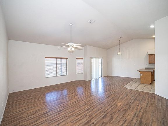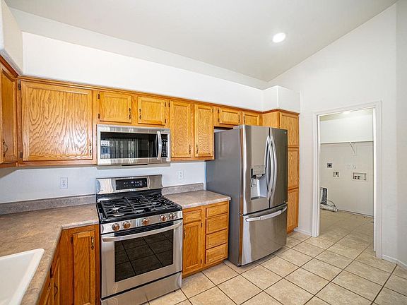 Newer gas stove, fridge, dishwasher and microwave. Vaulted ceilings in nearly every room. Laminate wood floor throughout and ceramic tile in traffic areas. Corner lot. Nice covered patio, large backyard.