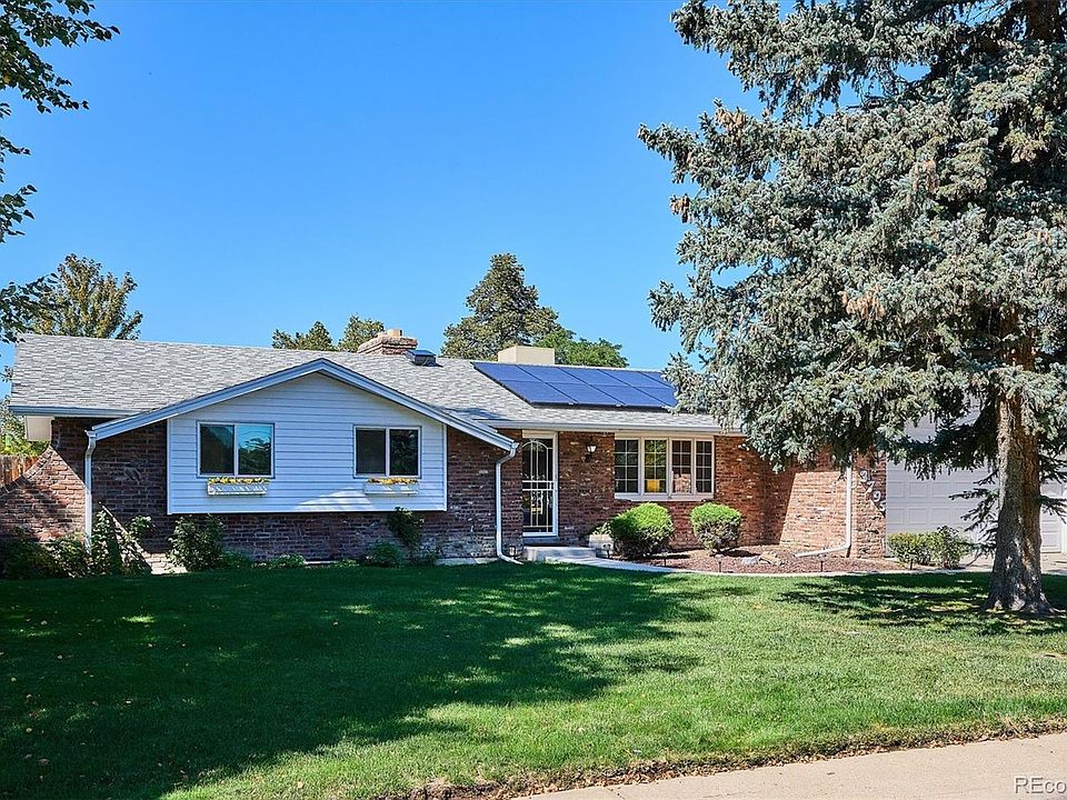 Welcome to this 1967 Mid-Century Ranch in the heart of Wheat Ridge. This spacious 4-bedroom, 3-bath home blends timeless character with modern updates. The main level features a bright living room, a bay-windowed kitchen with updated finishes, a fireplace, and a cozy den. 3 main-floor bedrooms, 2 of which showcase charming bay windows and 2 full baths. The fully finished basement offers a family room, wet bar, additional bedroom, craft room/office, full bath, tons of storage and convenient outdoor access—perfect for entertaining or private living space. Enjoy peace of mind with newer systems, abundant storage, and a paid-in-full solar system. A large driveway and 2-car garage provide plenty of parking. The 12,100 sq ft lot includes a covered back patio and mature yard space ideal for gatherings or quiet relaxation. Easy access to 1-70, 10 min to Highlands Square and Tennyson St, 15 min to Downtown. Plenty of restaurants and coffee shops. Walk to Crown Hill Park for a leisurely walk around the lake. This home combines classic mid-century style with modern comfort in a sought-after Wheat Ridge location