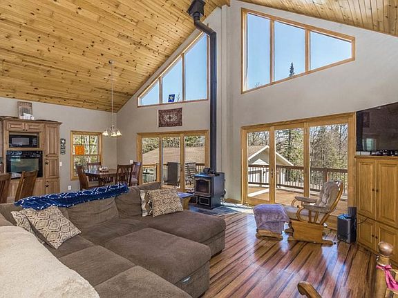 Welcome to 3795 Eagle Ridge Rd! If you are looking for privacy, country living-close to town, then your search is over! This 4 bed, 4 bath has all the amenities to make your day-to-day living a breeze. From the moment you enter, you'll be "wowed" by the 19ft vaulted knotty pine ceiling that towers over the heart of this open-concept home: the kitchen offers a 5 burner gas range, wall oven, walk-in pantry, hickory cabinets and S/S appliances. A casual dining area shares this space, along with the living room featuring a Harmon 2.6 wood stove to take the chill out of those winter nights. There is access to the wrap-around deck from the dining or living rooms.If natural light is on your wish list, you'll love the transom windows that grace this area. The main floor also offers the first of two master suites with a HUGE closet, laundry with 1/4 bath, nice storage and is handicap accessible with 36" doorways . The loft level boasts the second master suite with another HUGE closet, 3/4 bath and your own private deck offering a great place for some quiet time and a cup of coffee overlooking your PRIVATE yard. The basement is ready for entertaining! The rec room has a gas fireplace, dry bar area with fridge, walk-out--what a great space! Rounding out the basement level are the 3rd & 4th bedrooms, full bath, mechanical room and storage area under the stairs. We aren't done yet....let's add a 30x40 detached garage, paved driveway, maintenance-free deck, ICF foundation, geo-thermal heating & cooling, air exchanger, paver patio and fire pit. All of this situated on a manicured 4.8 acre lot, 15 minutes to downtown or the mall! DO NOT HESITATE! Schedule your showing and bring your checkbook!