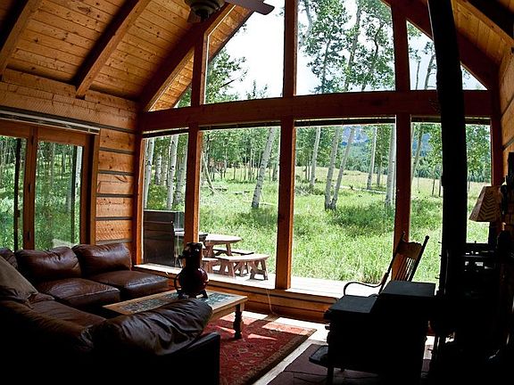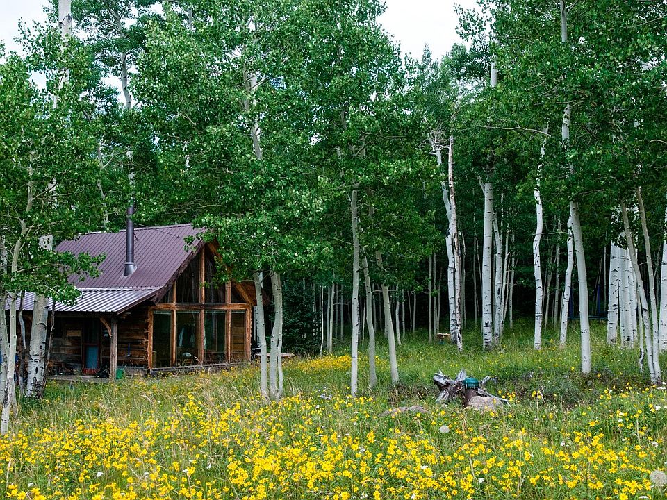 Custom log hand hewn cabin in the aspens! Open floor plan with a loft bedroom. Cabin faces Sneffels Mountain Range. Huge views of nearby peaks! Has a septic system with a cistern, a solar system, a portable generator and a great warming wood stove. Private access to 3 million acres of Sneffels Wilderness and Uncompahgre National Forest lands. Touches up to Ralph Lauren Ranch.